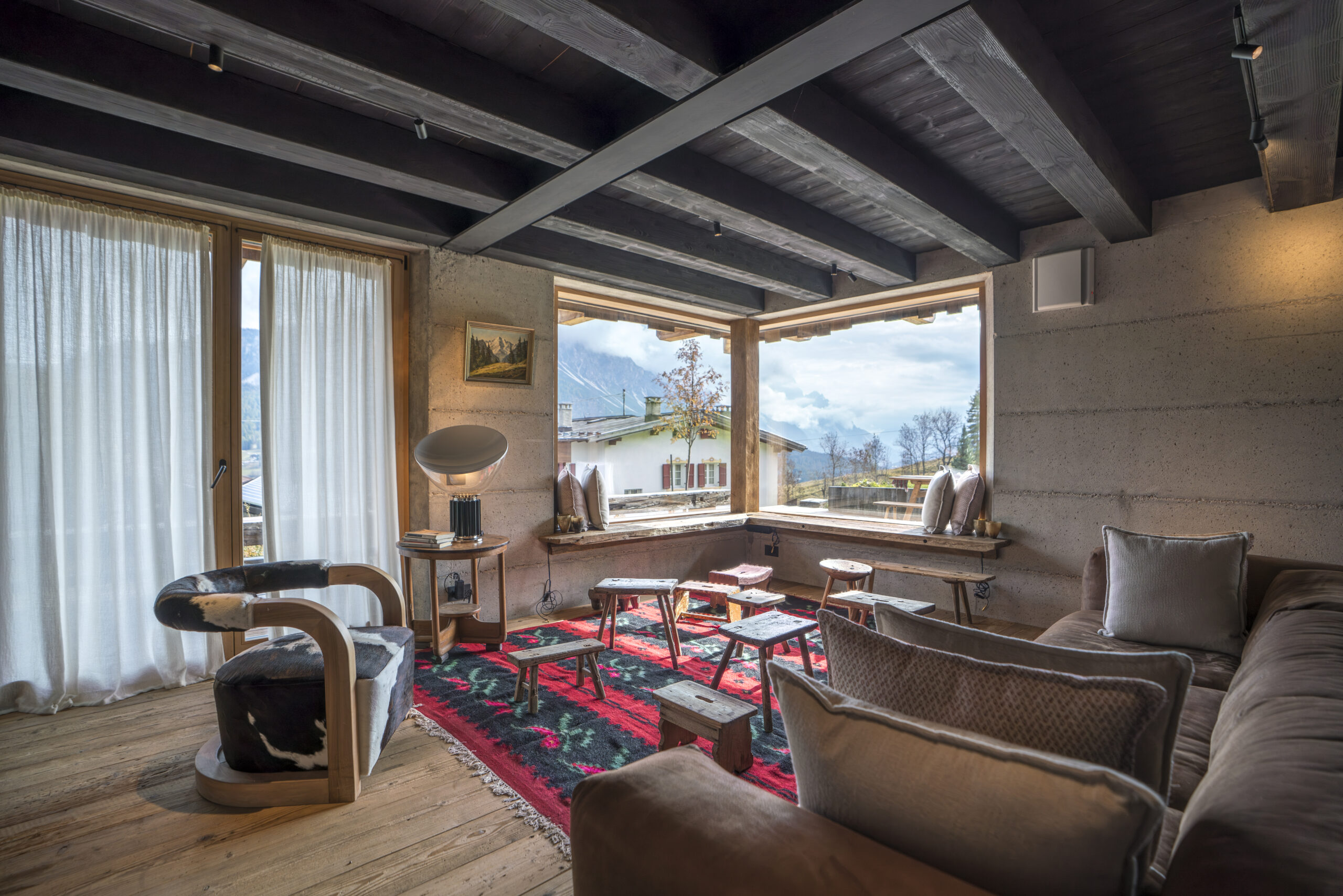 Legno antico, pietra locale e grandi vetrate creano un dialogo armonioso tra interni e paesaggio. Ogni dettaglio è pensato per esaltare la luce naturale e la vista sulle Dolomiti, patrimonio UNESCO, rendendo questa residenza un autentico rifugio di design alpino.