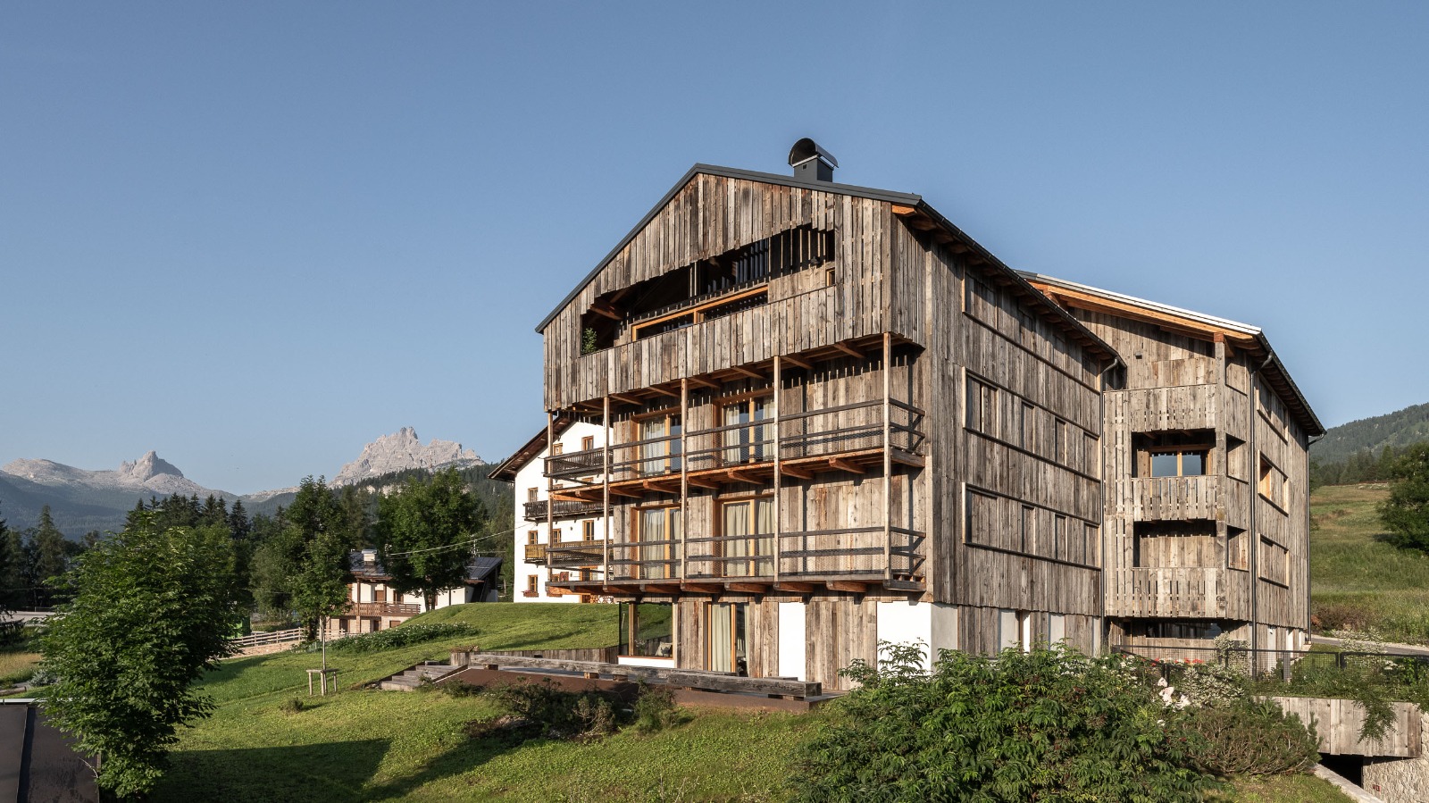 Nel cuore di Cortina, immersa nei prati dell’antica località di Gilardon, la proprietà reinterpreta la tradizione rurale ampezzana con l’eleganza del design contemporaneo raccontando un nuovo modo di vivere la montagna: autentico, raffinato, essenziale.